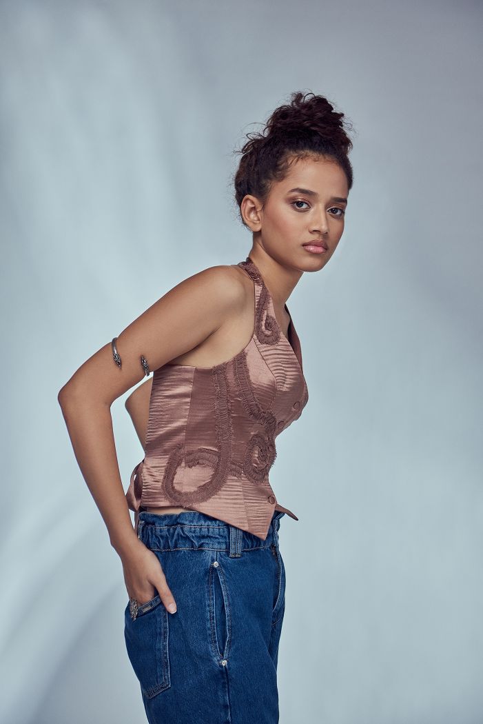 Nude Ruched Waistcoat Sale price₹7,000.00
