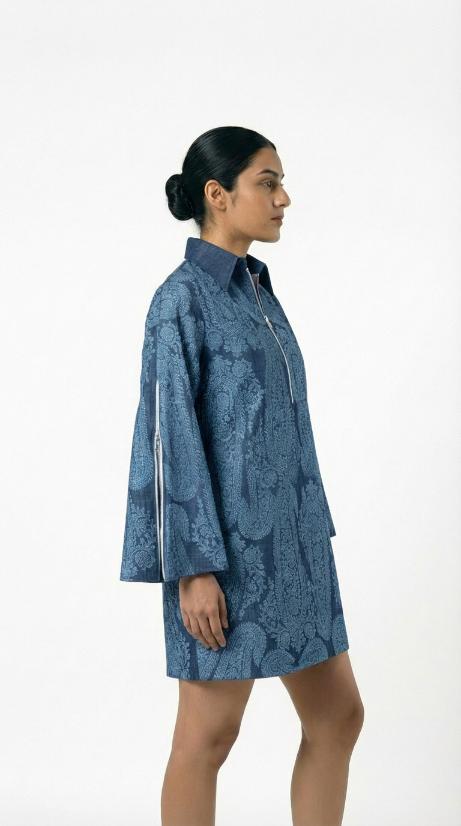 Tencel Navy Paisley Shirt Dress