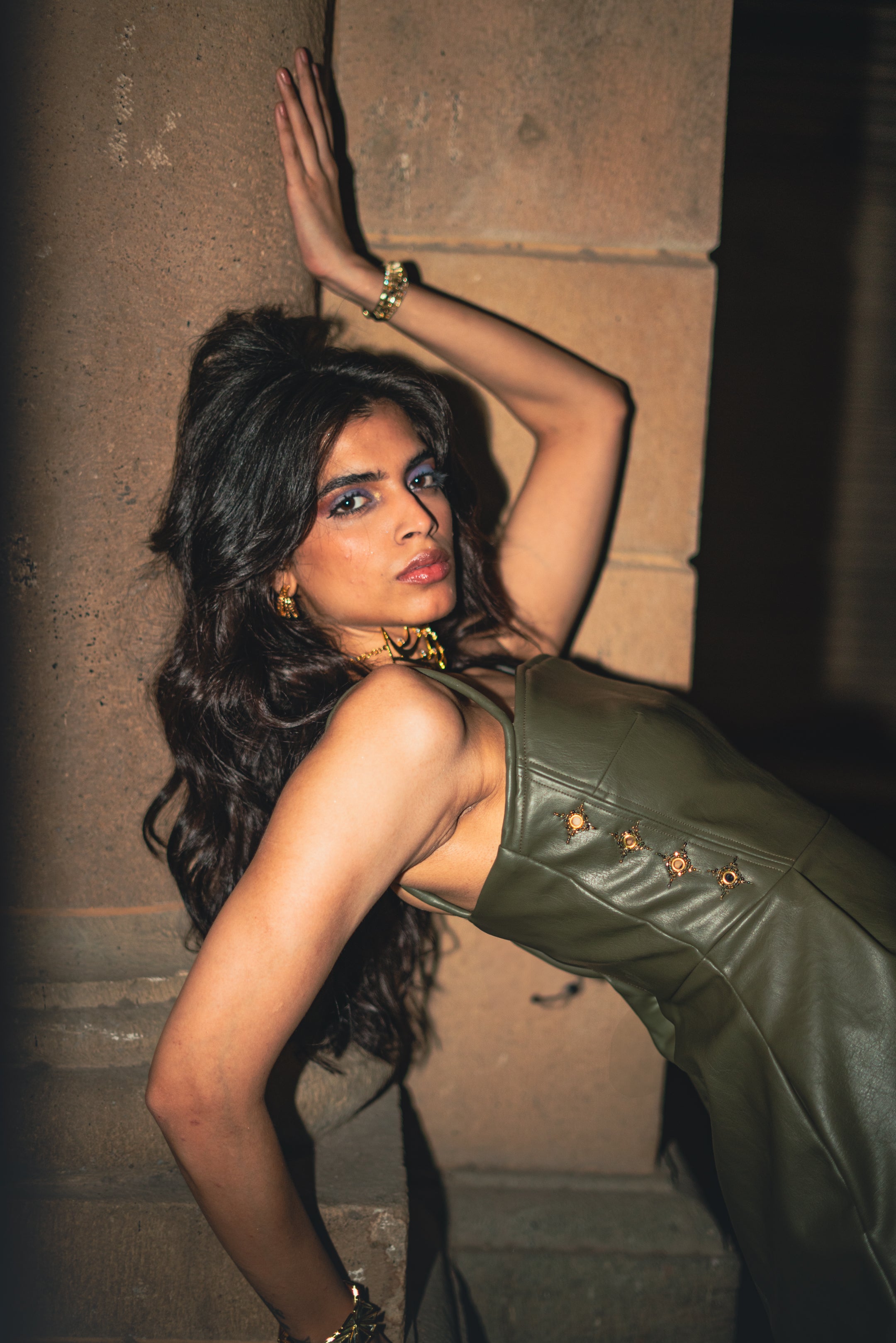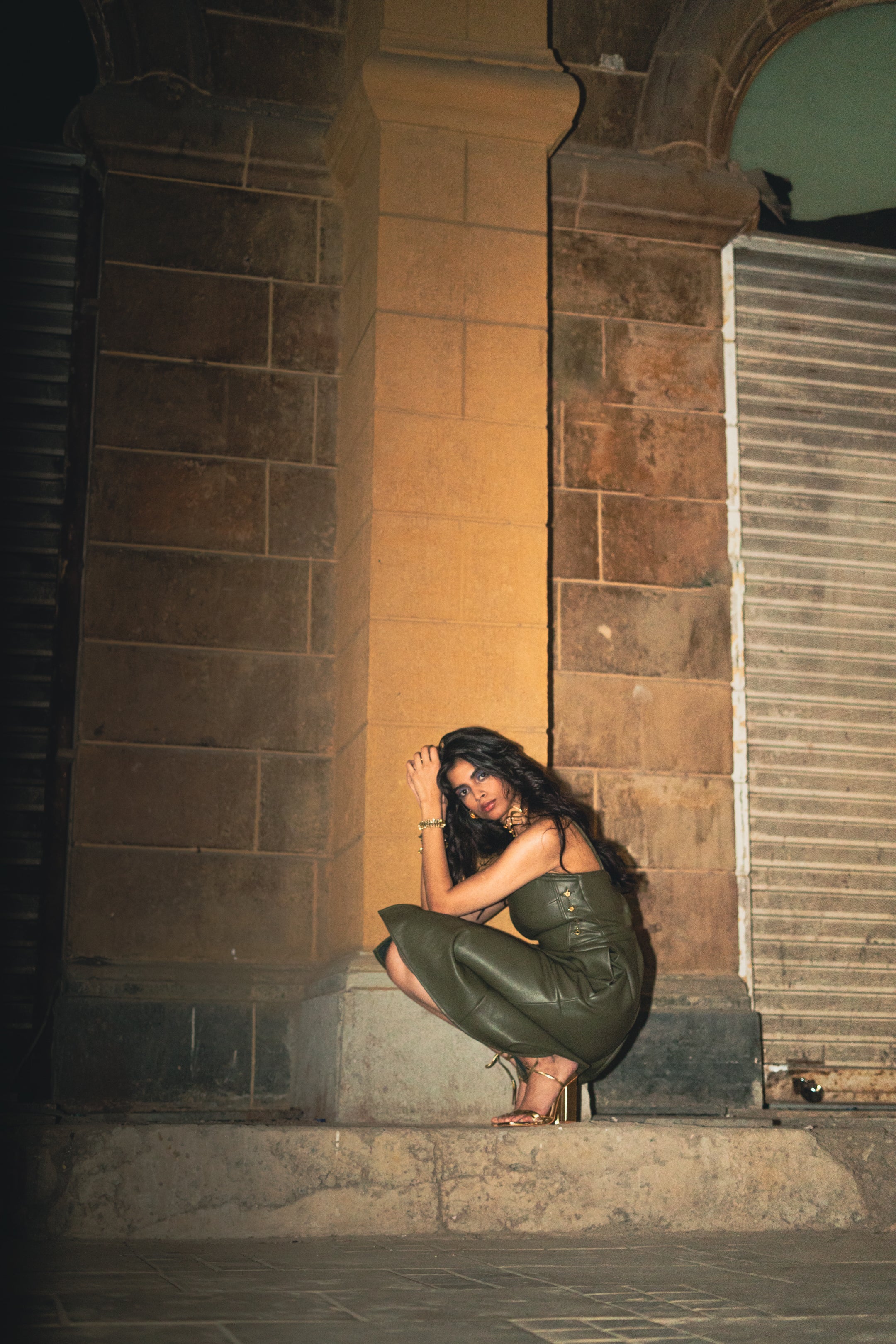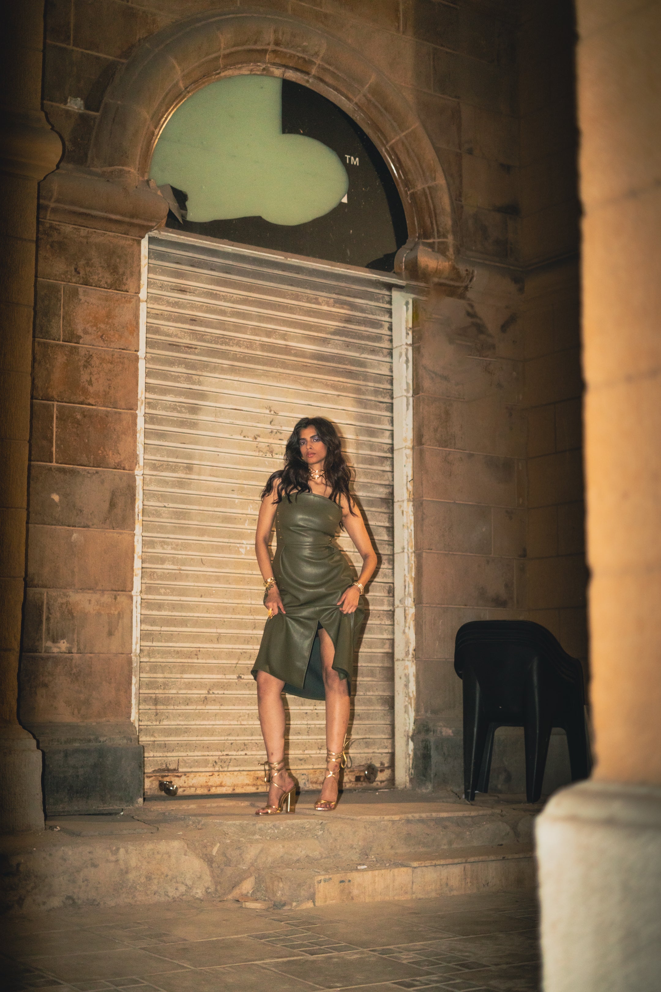 THE Olive Leather Dress
