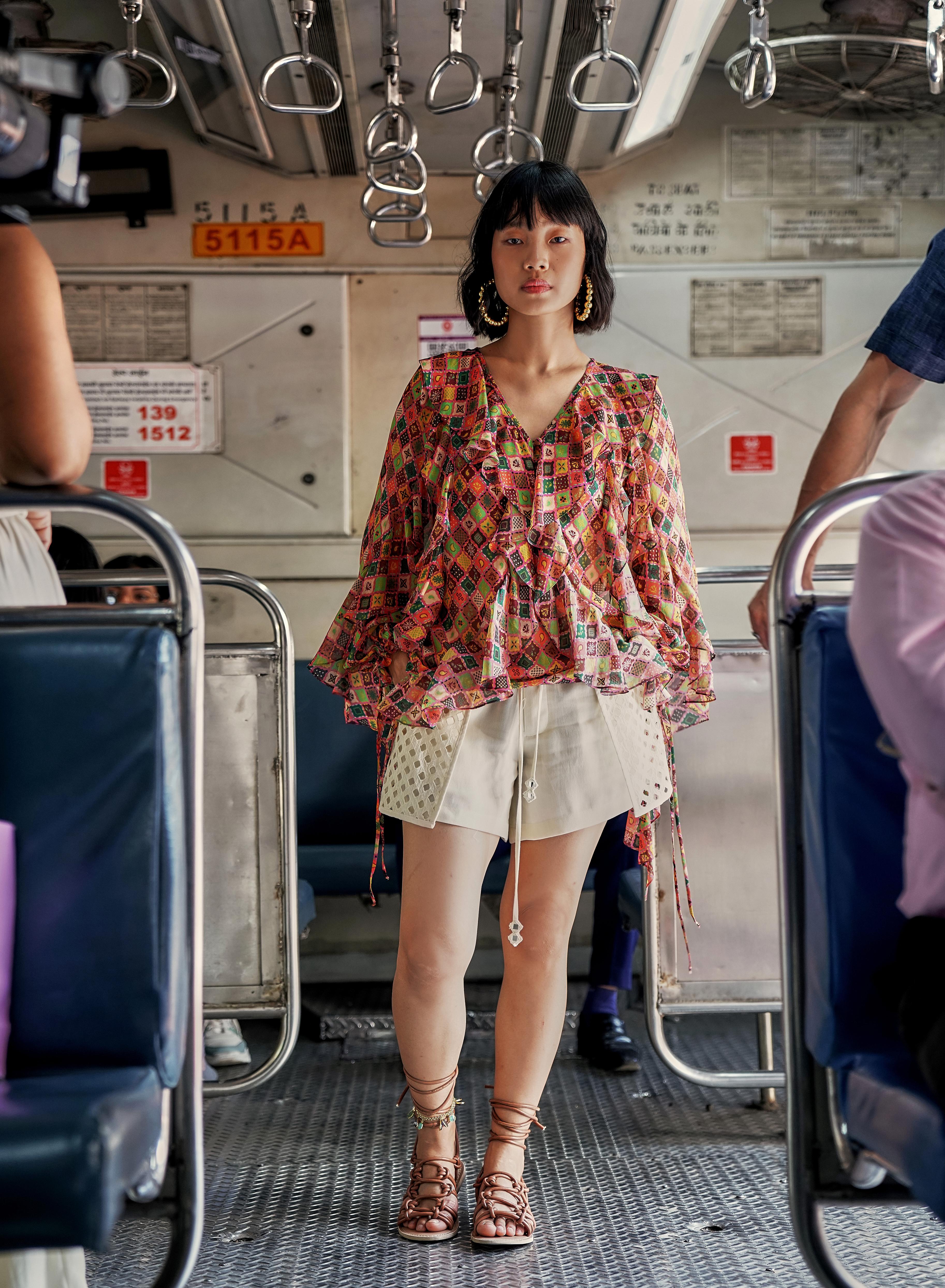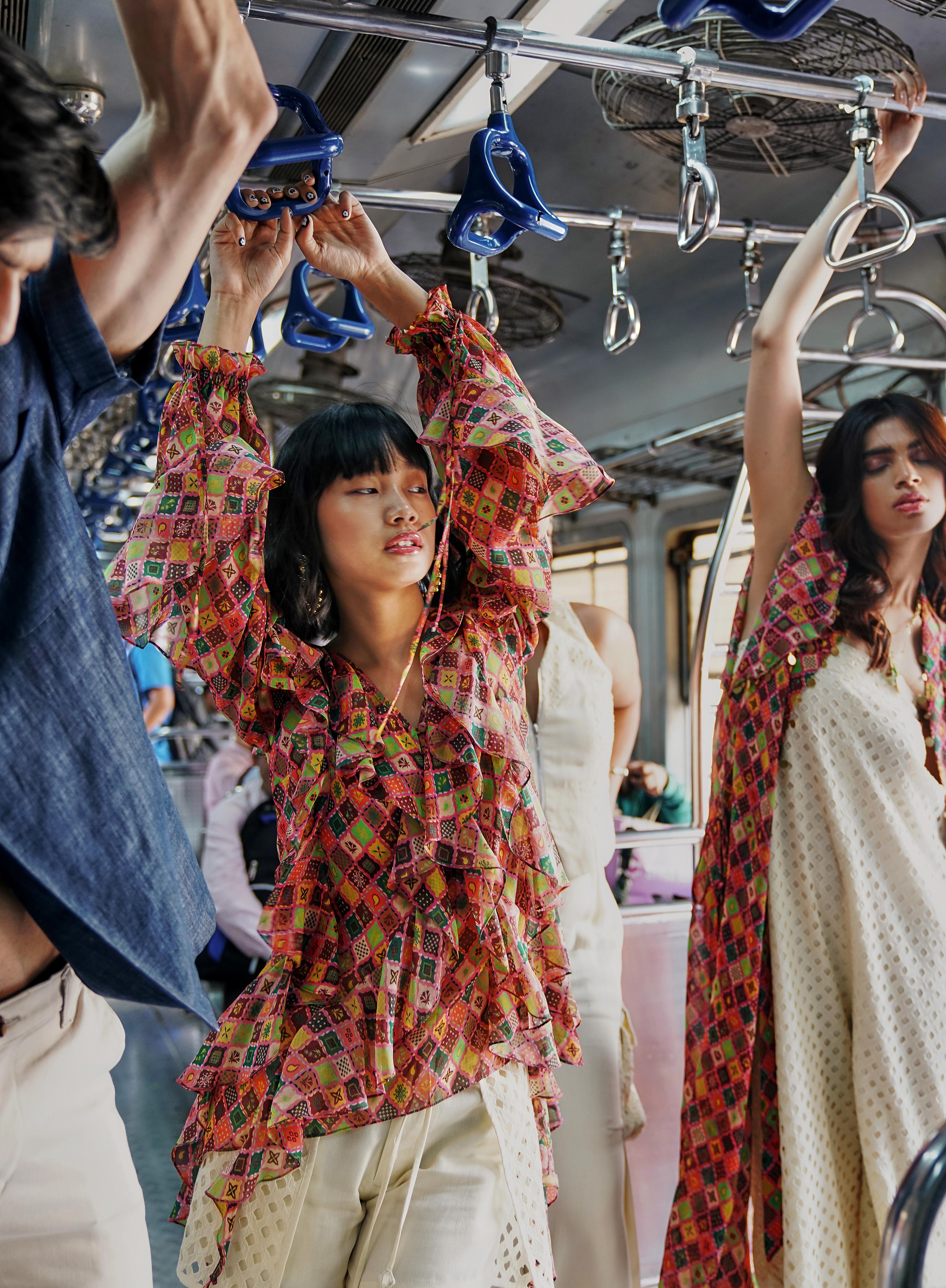 MULTICOLOUR TRELLIS CASCADE RUFFLE TOPMULTICOLOUR TRELLIS CASCADE RUFFLE TOP