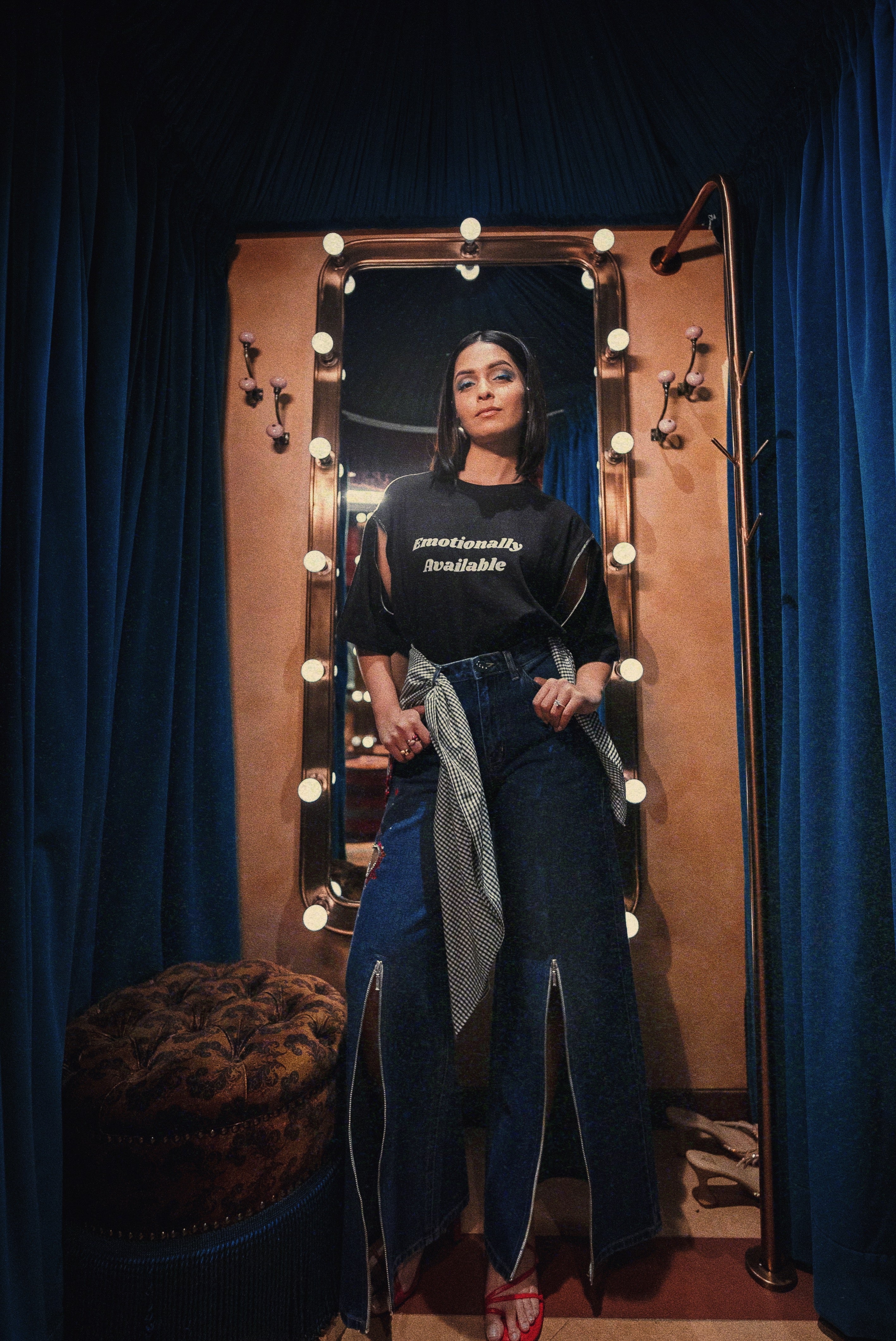 BLACK EMOTIONALLY AVAILABLE ZIPPER TEE Sale price₹3,999.00