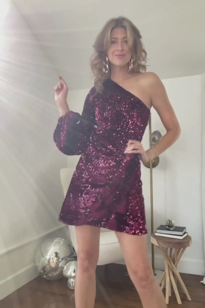 MAGENTA ONE SHOULDER SEQUIN DRESS