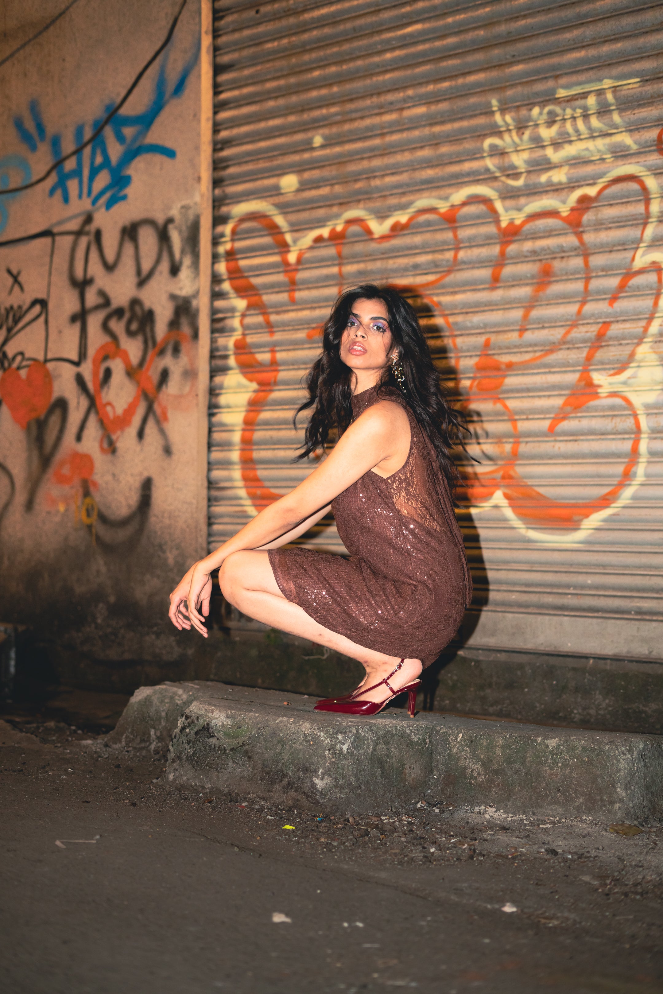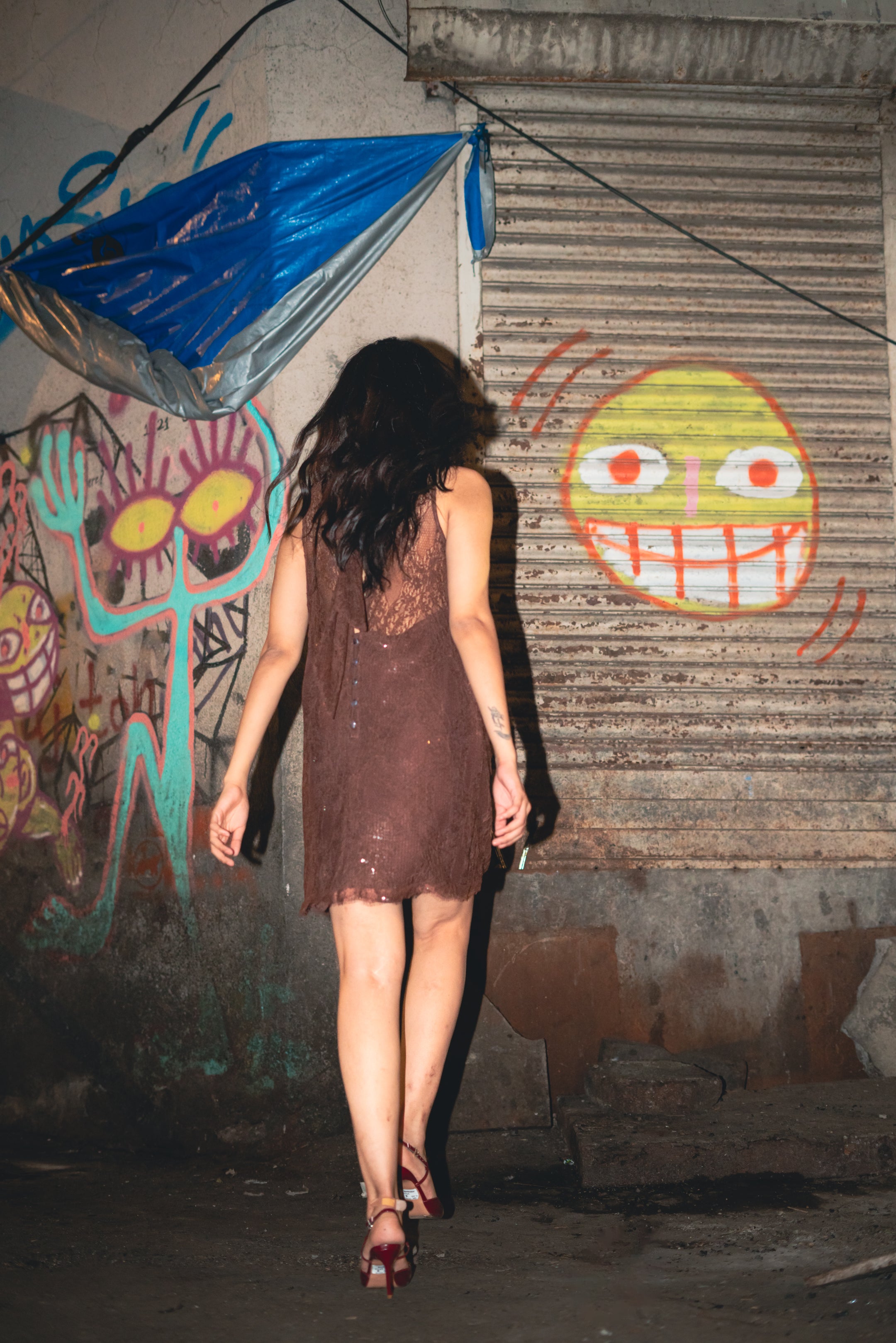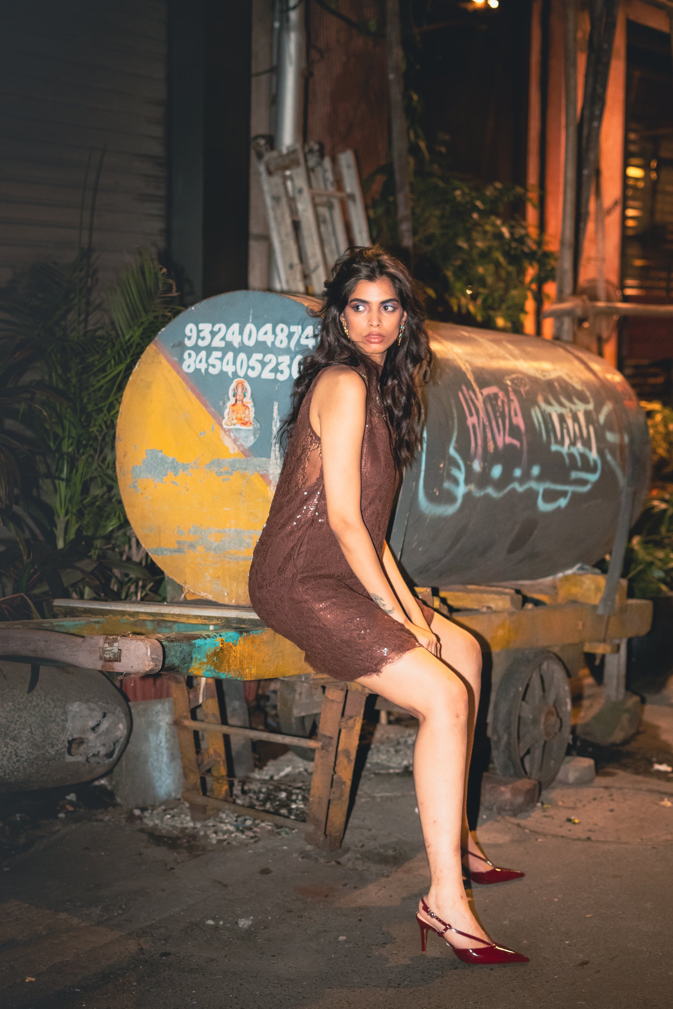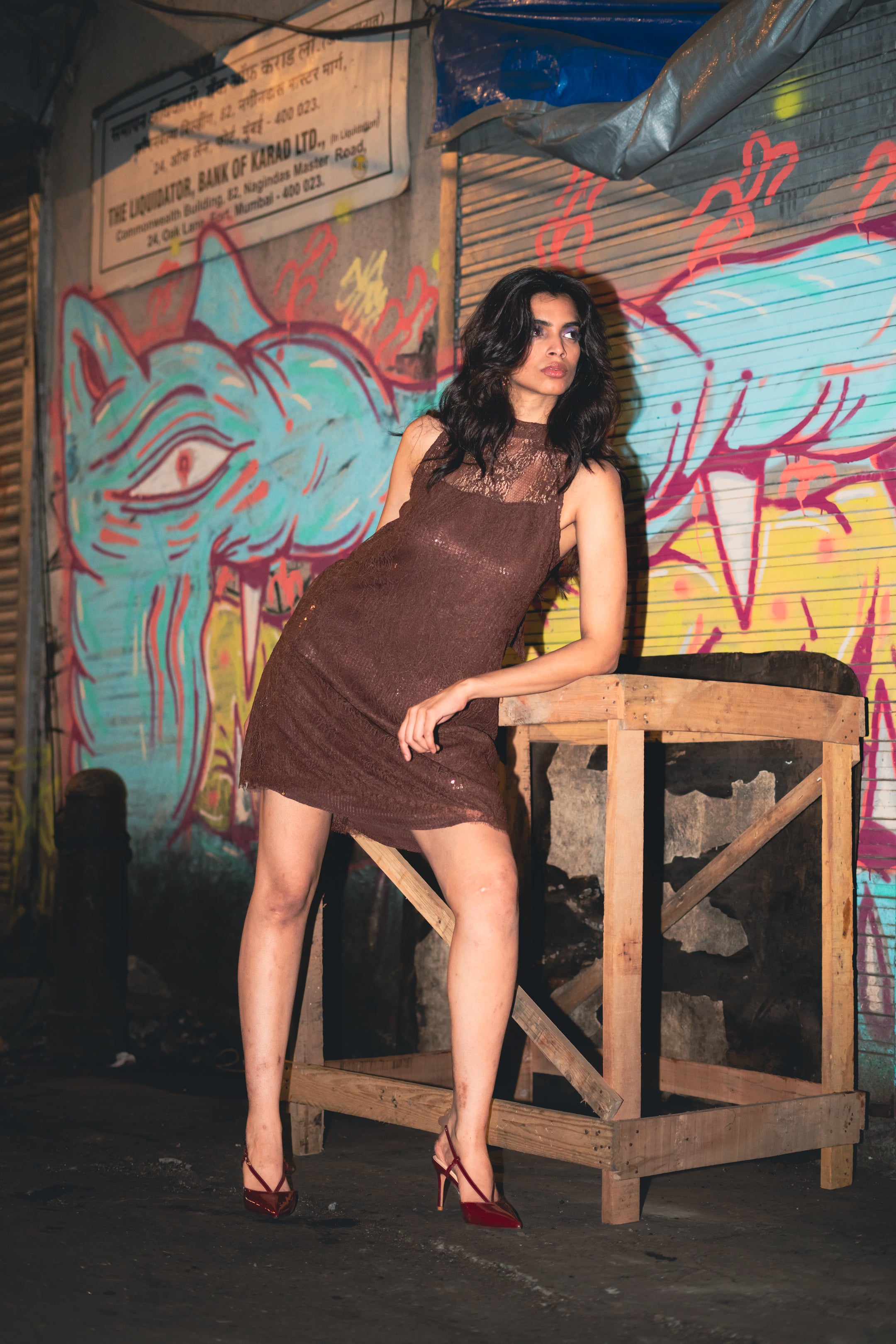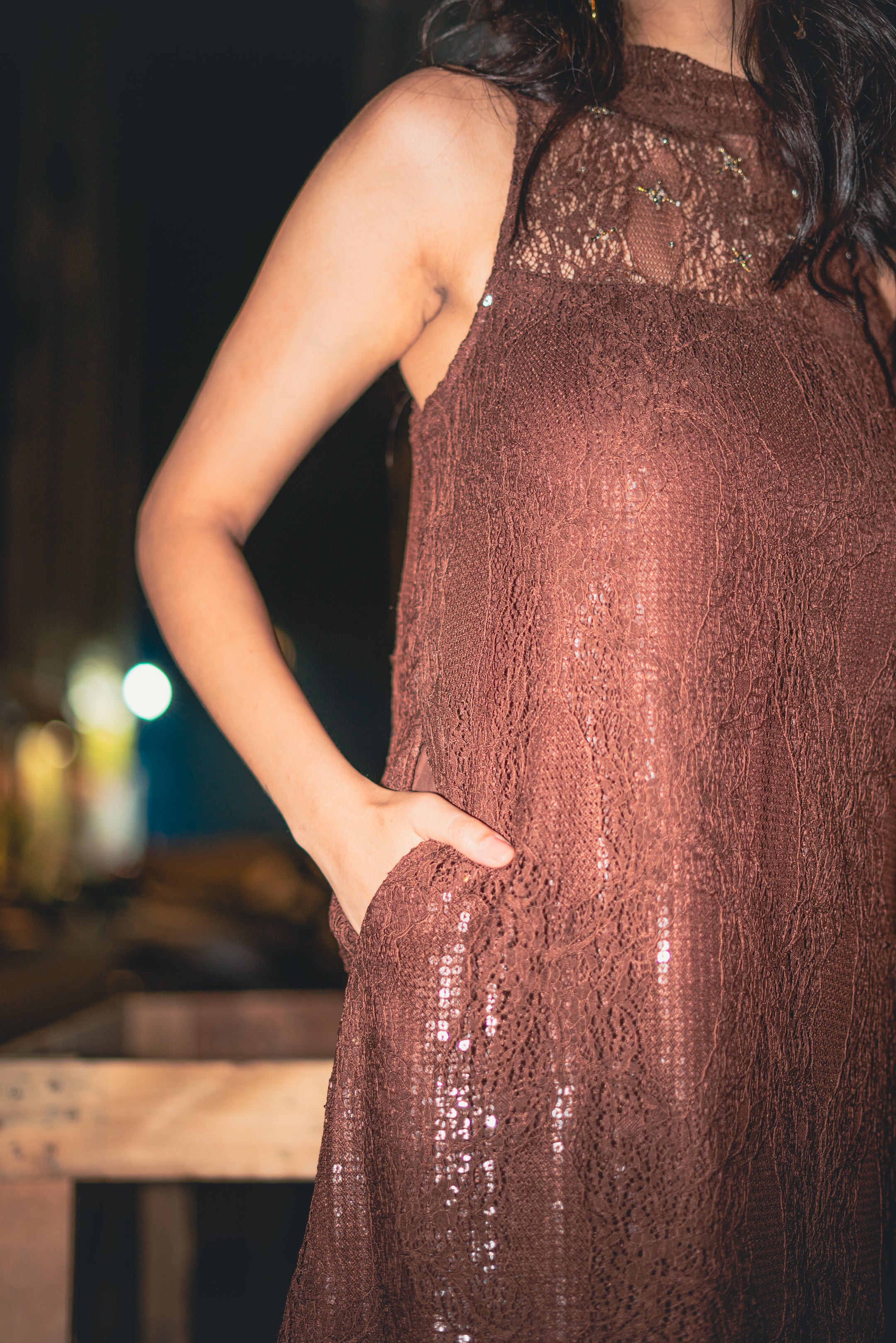 Chocolate Brown Lace Halter Dress Sale price₹12,000.00