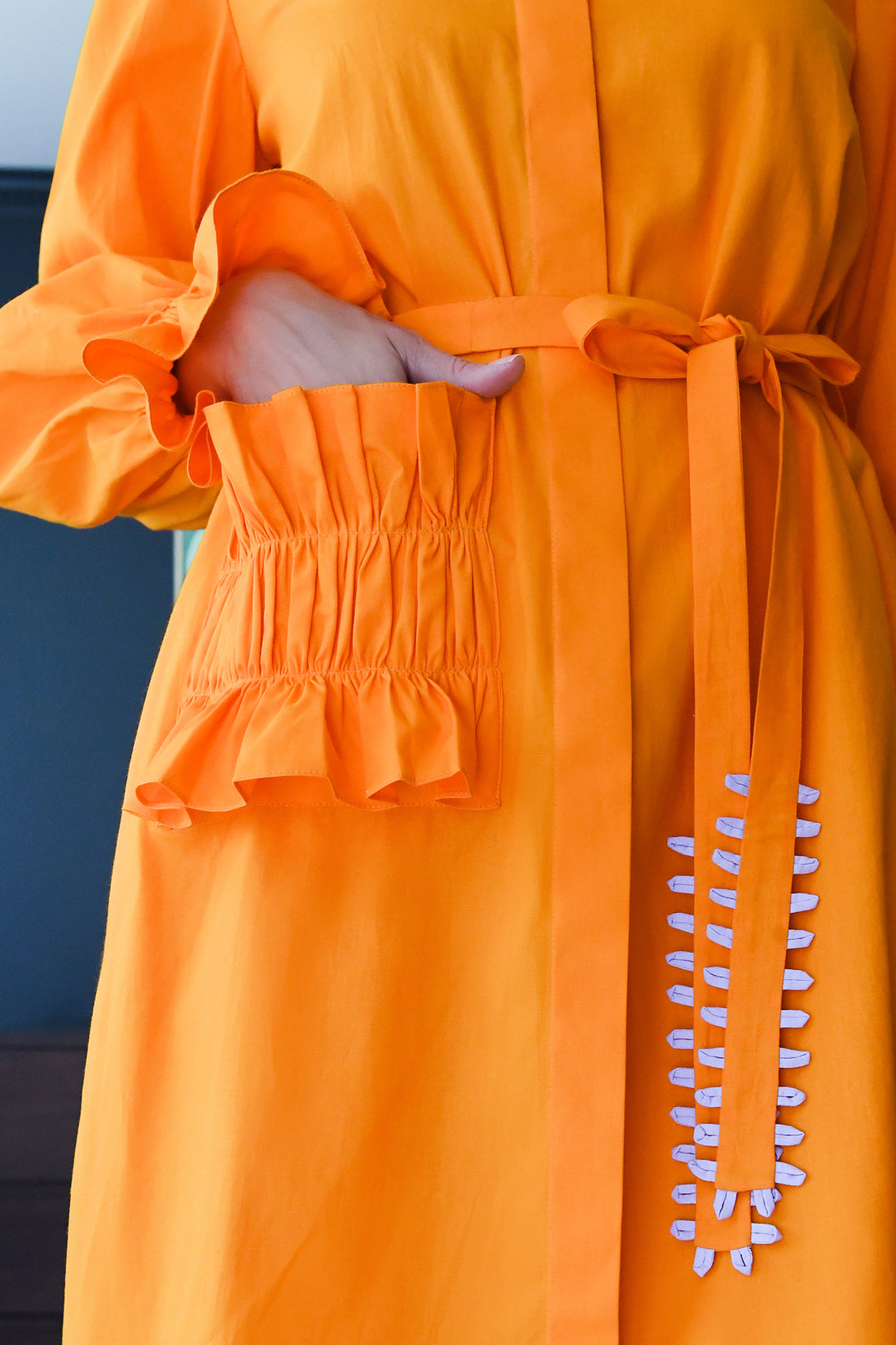 Flows shirt dresses in cotton poplin perfect for an easy casual look. Statement pocket, Infused with contrast embroidery SJ DNA detail on collar. Can be dresses up or down according to your mood. Pair with flats, sneakers, sandals for an easy look, Pair stiletto, pumps, wedges for a night out.