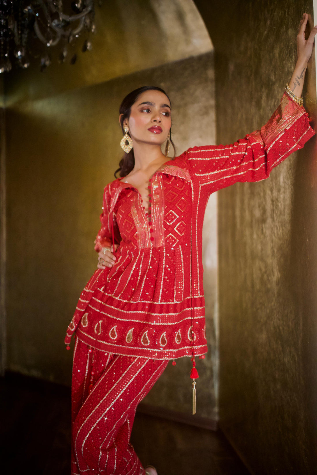 RUBY RED AND GOLD CHIKANKARI KURTI