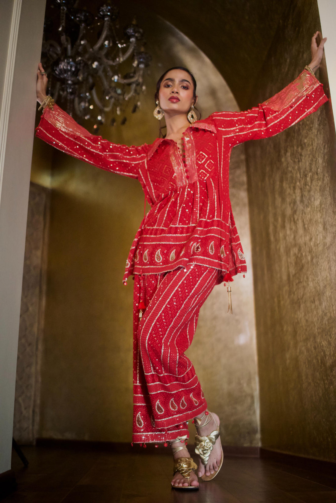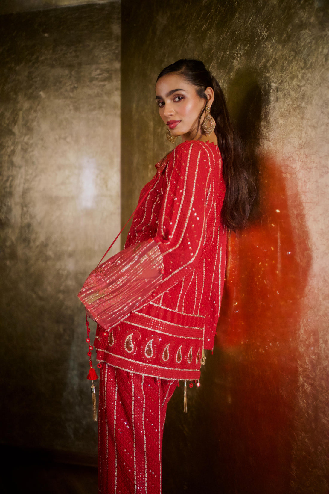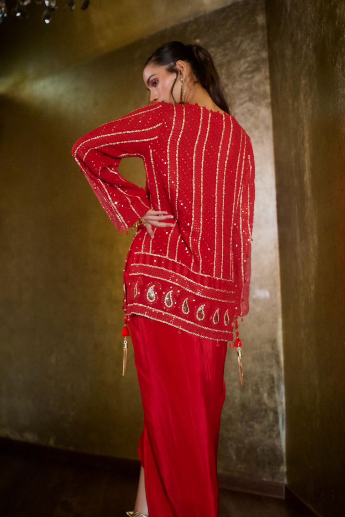 RUBY RED AND GOLD CHIKANKARI KURTI Sale price₹22,000.00